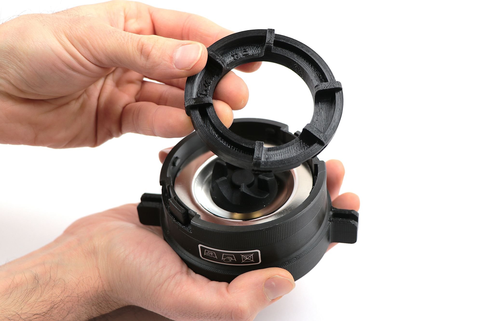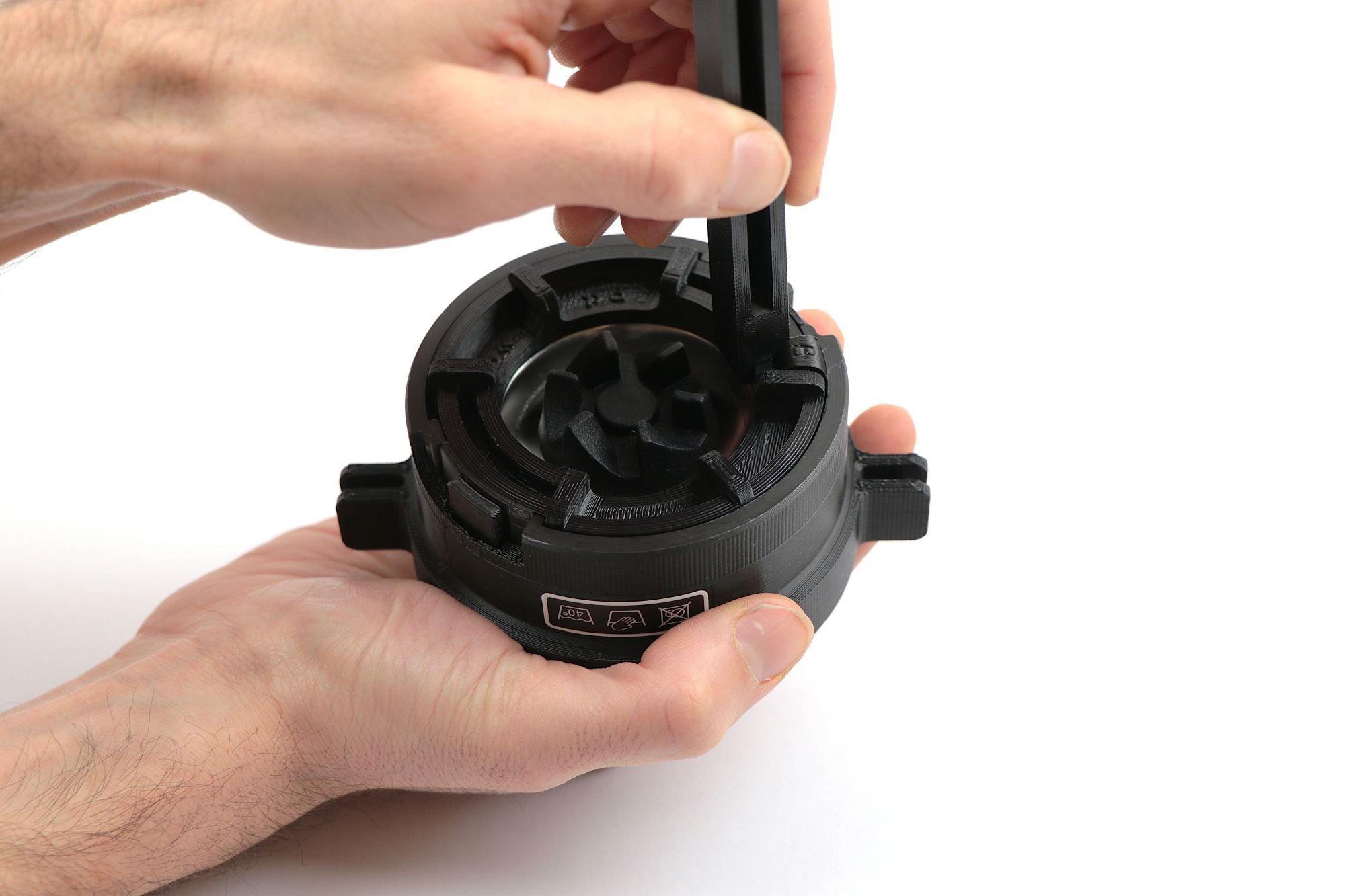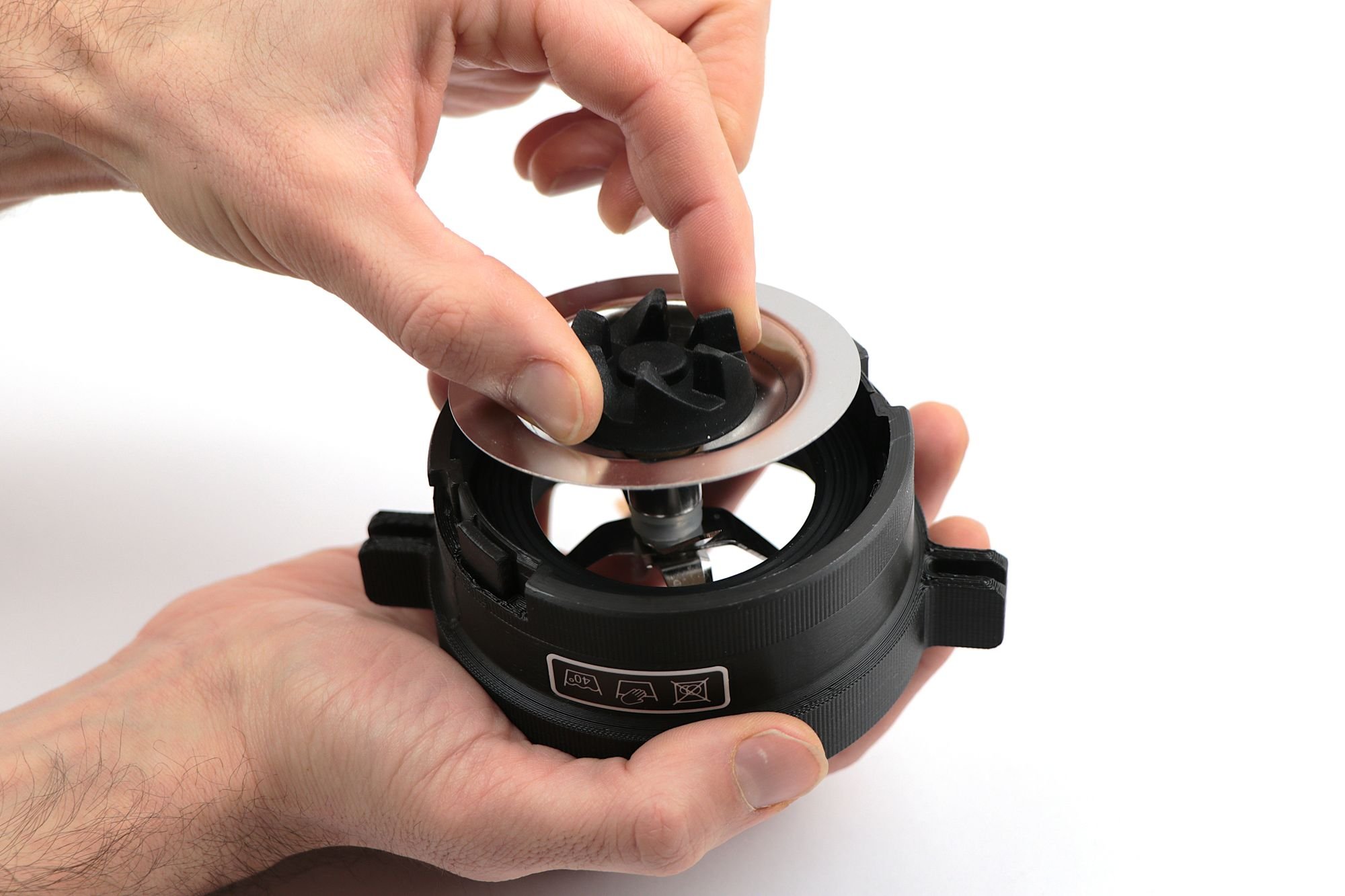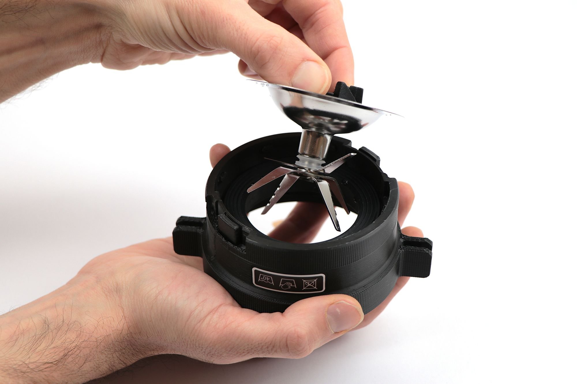The blades head of the Open Funk re:Mix Blender can be disassembled for cleaning, maintenance, or replacement of individual parts.