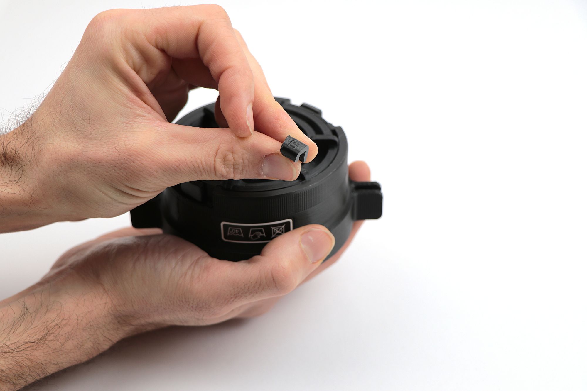 - Use the locker tool: align the side of the tool with the rounded groove on the locking ring.